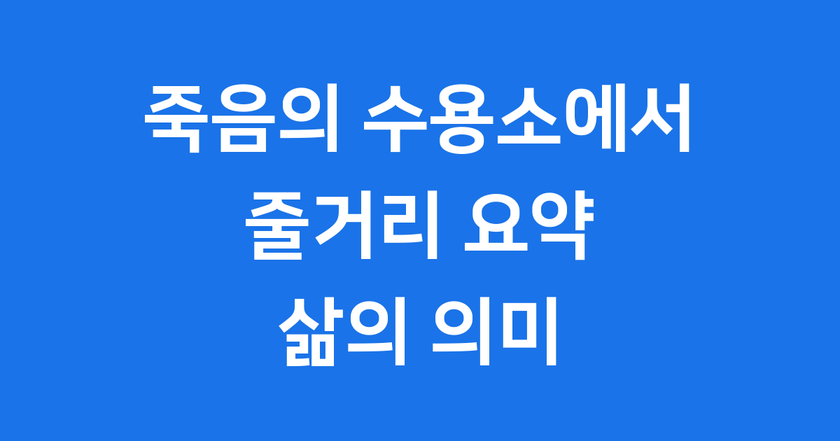 이 책은 단순한 이야기가 아니라, 아주 힘들었던 전쟁의 한가운데에서 한 사람이 어떻게 삶의 의미를 찾았는지 보여주는 놀라운 기록입니다. 오늘은 이 책의 감동적인 죽음의 수용소에서 줄거리를 함께 살펴보면서, 우리에게 어떤 중요한 메시지를 주는지 알아보겠습니다. 😊